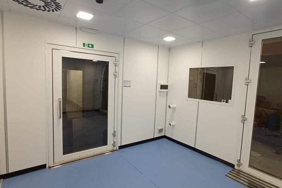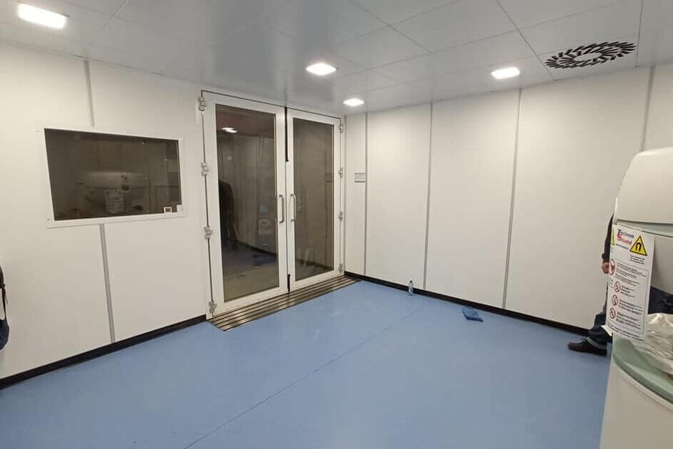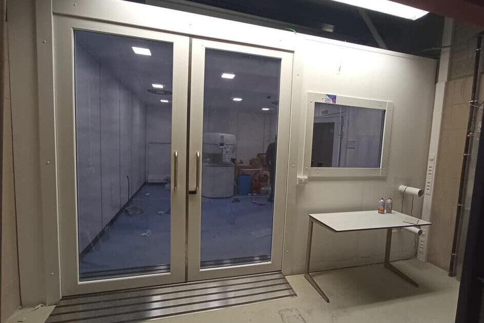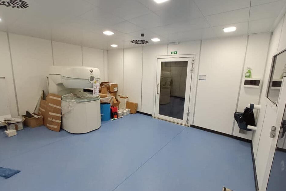 Installation terminée de notre propre cabine Steelmod en exécution spécifique avec une IRM vétérinaire Esaote à Merelbeke, Belgique. Equipé de deux portes transparentes dont une double, qui permettront l’entrée de grandes civières vétérinaires. Notre cabine a reçu les compliments non seulement du client final mais également du personnel local d’Esaote pour ses niveaux élevés de finition et la qualité de ses valeurs de blindage uniques.