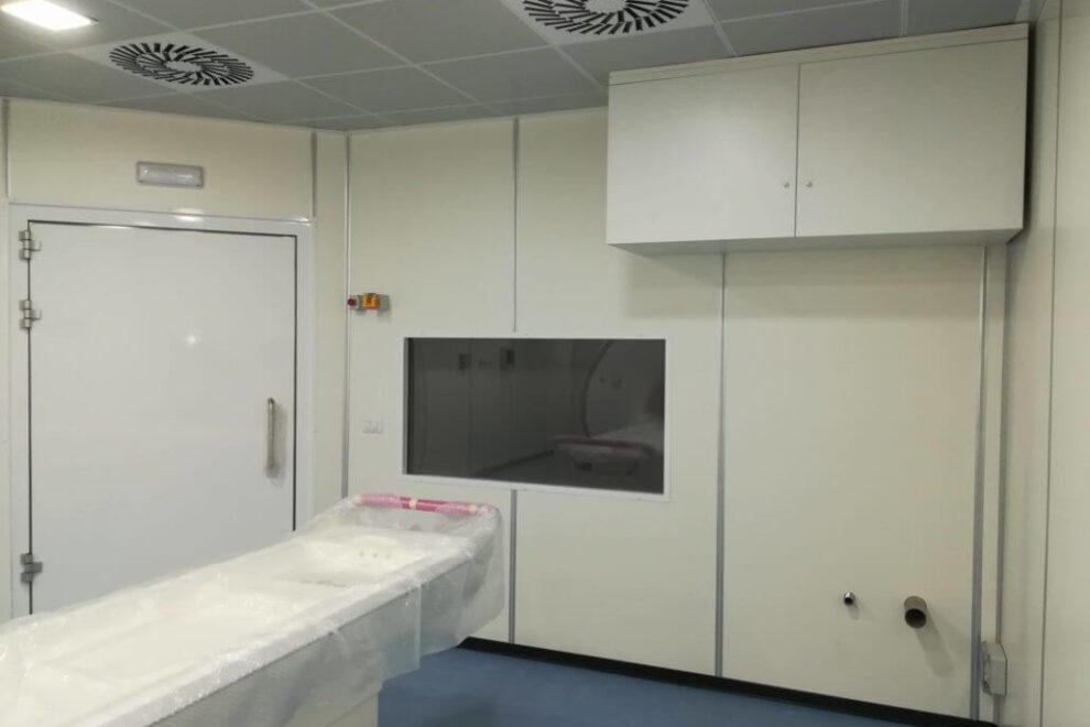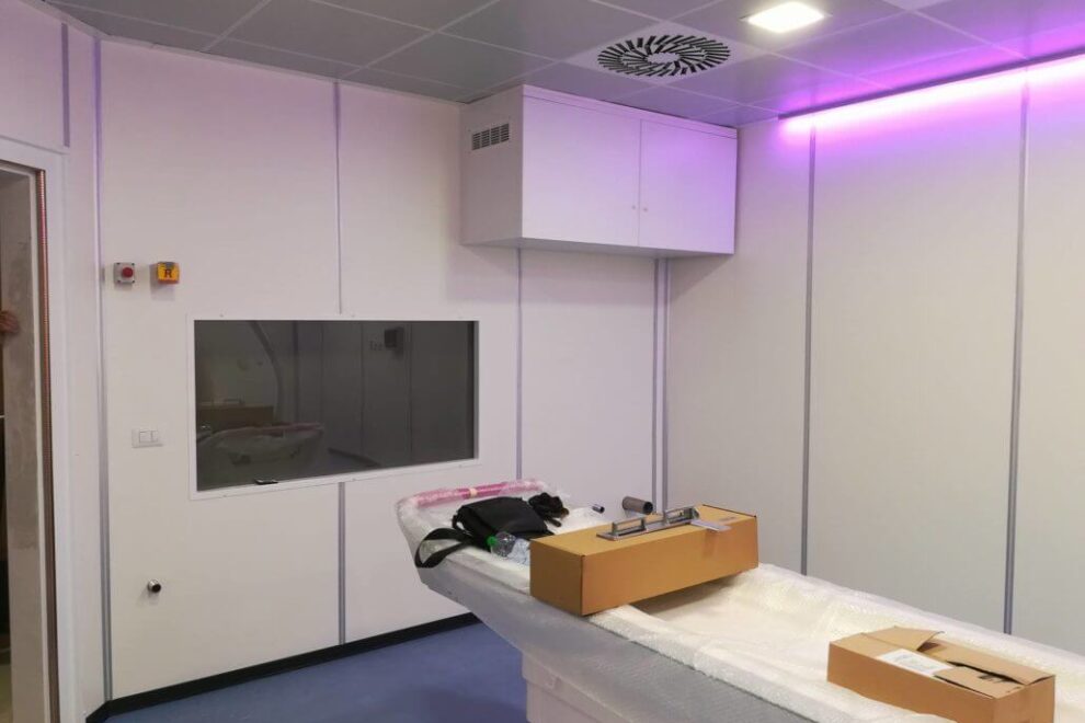 Nous avons terminé l’installation de notre cabine ALUMED pour le CEI de Turin afin de desservir une IRM 3 T. SKYRA Siemens à l’Institut européen d’oncologie de Milan. Nous avons renforcé l’isolation acoustique des murs et du plafond pour réduire le bruit des forts gradients et la chromothérapie pour atténuer l’anxiété des patients. Le diagnostic sera bientôt opérationnel.