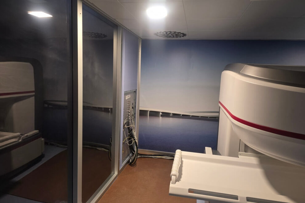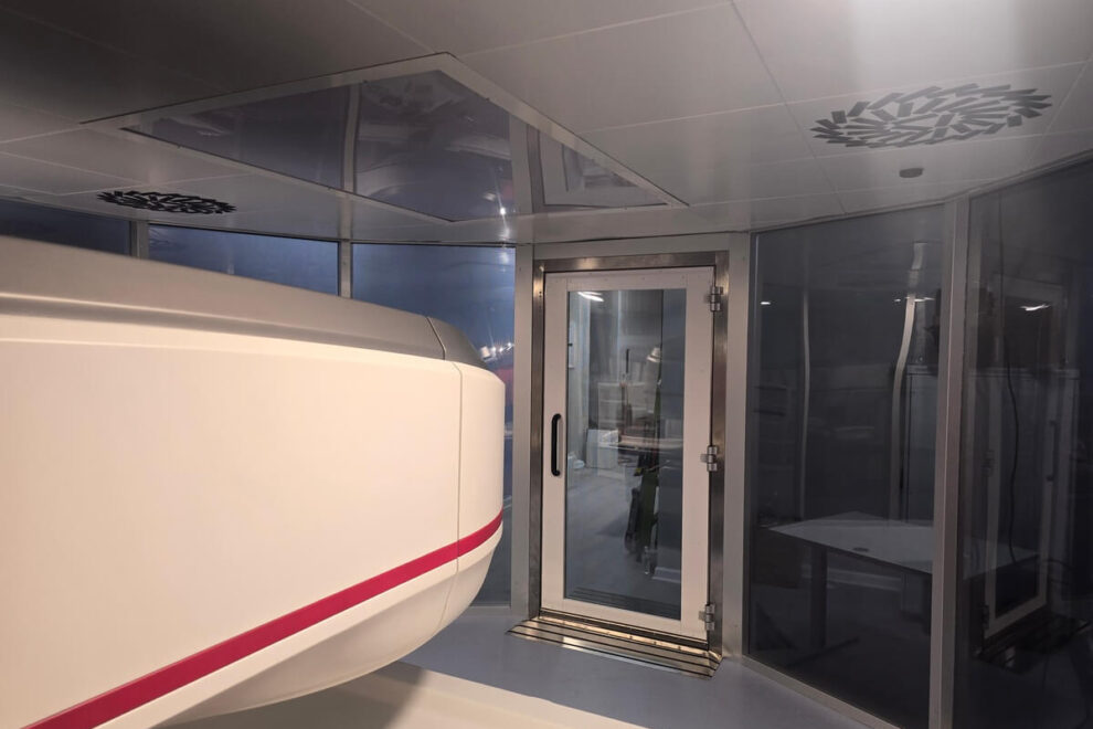 Installation récente du deuxième écran modèle Performa au Georgia Interventional Medicine à Atlanta – GA. Cette solution de blindage avancée comprend de grandes vitres qui remplacent les panneaux en cuivre ou en acier obsolètes, qui obstruent souvent la transparence et contribuent à l’inconfort et à la claustrophobie du patient, empêchant parfois la réalisation des tests de diagnostic. Au lieu de cela, ce système breveté en Italie permet aux patients de voir à l’extérieur de la salle d’examen et vice versa, réduisant ainsi le sentiment d’isolement. Cette cage assure un niveau d’atténuation des perturbations de 90 dB, obtenu grâce à deux filets de blindage spéciaux qui, lorsqu’ils sont couplés dans un joint labyrinthe, maintiennent à la fois une visibilité totale et des performances de blindage optimales.
