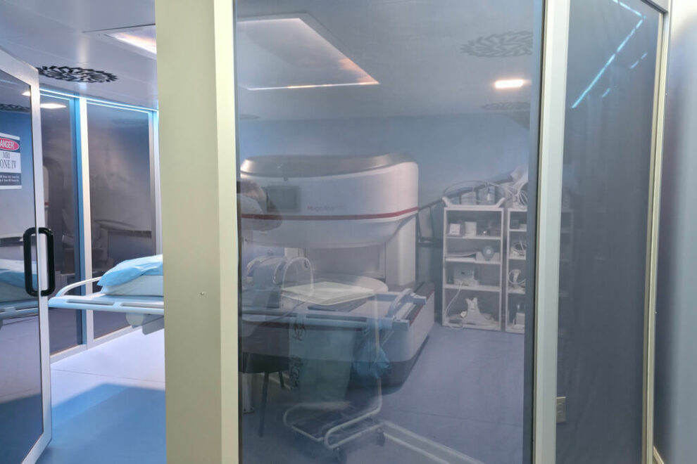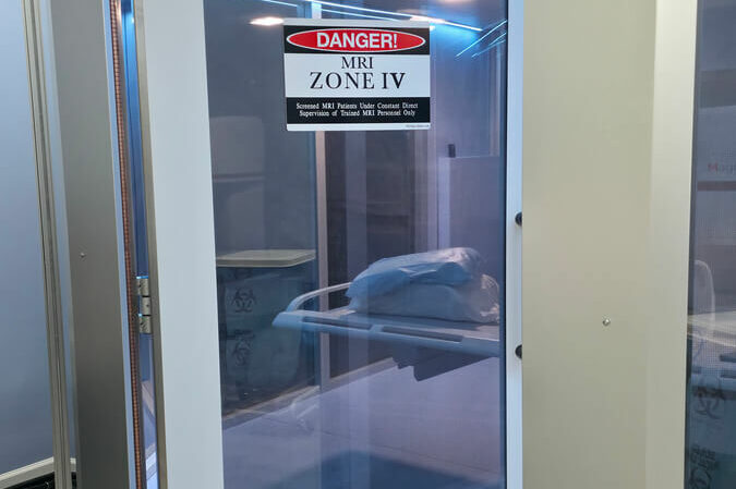 Recent installation of the second Performa model screen at the Georgia Interventional Medicine in Atlanta – GA. This advanced shielding solution features large glass panes that replace outdated copper or steel panels, which often obstruct transparency and contribute to patient discomfort and claustrophobia—sometimes preventing the completion of diagnostic tests. Instead, this Italian-patented system allows patients to see outside the examination room and vice versa, reducing feelings of isolation. This cage ensures a 90 dB attenuation level of disturbances, achieved through two special shielding nets that, when coupled in a labyrinth joint, maintain both full visibility and optimal shielding performance.